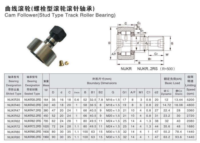 曲线滚轮(螺栓型滚轮滚针轴承)